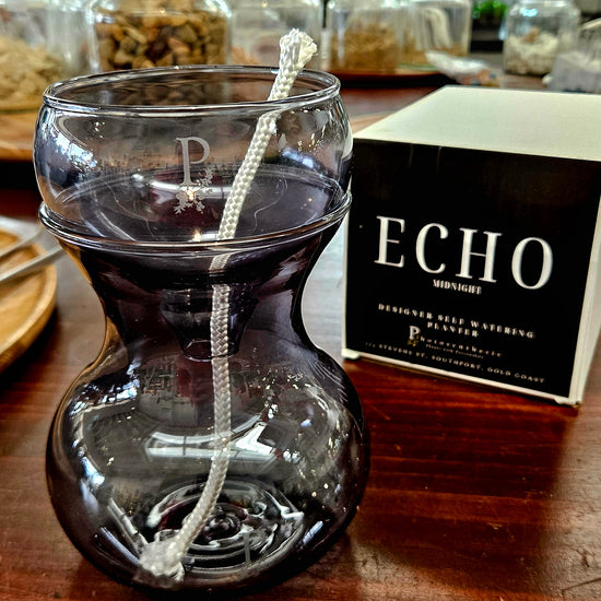 The Echo is your new everyday essential. A clever, compact, self-watering system designed to bring fresh greens into any space. Perfect for herbs, cuttings, and small feature plants. Clear water window for effortless monitoring. Smart wicking design that holds three to four weeks of water